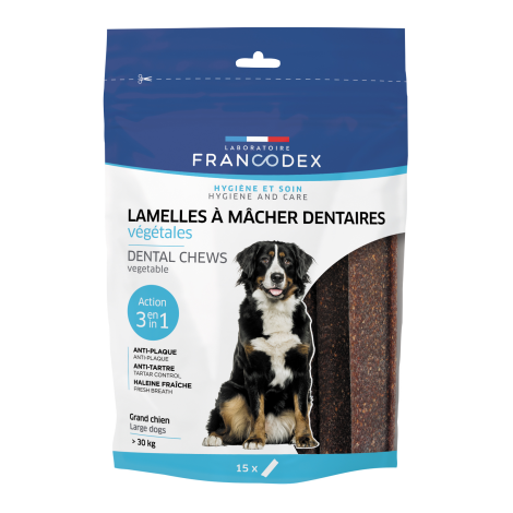 Podawać psu po posiłku, na przemian ze szczotkowaniem. Upewnić się, że pies ma dostęp do świeżej wody.